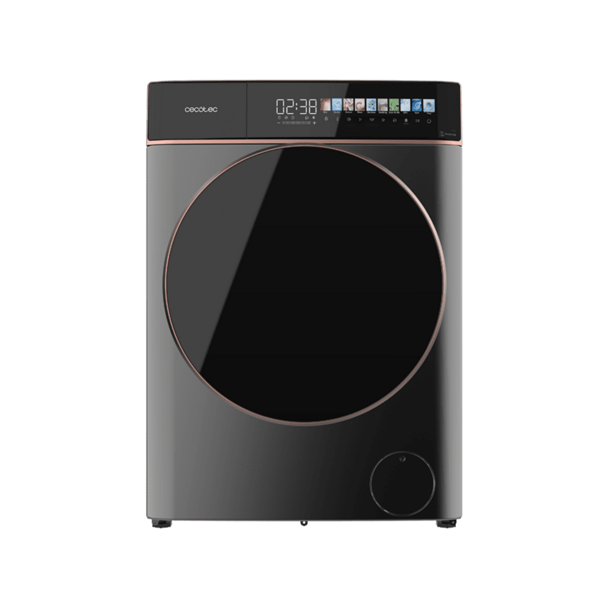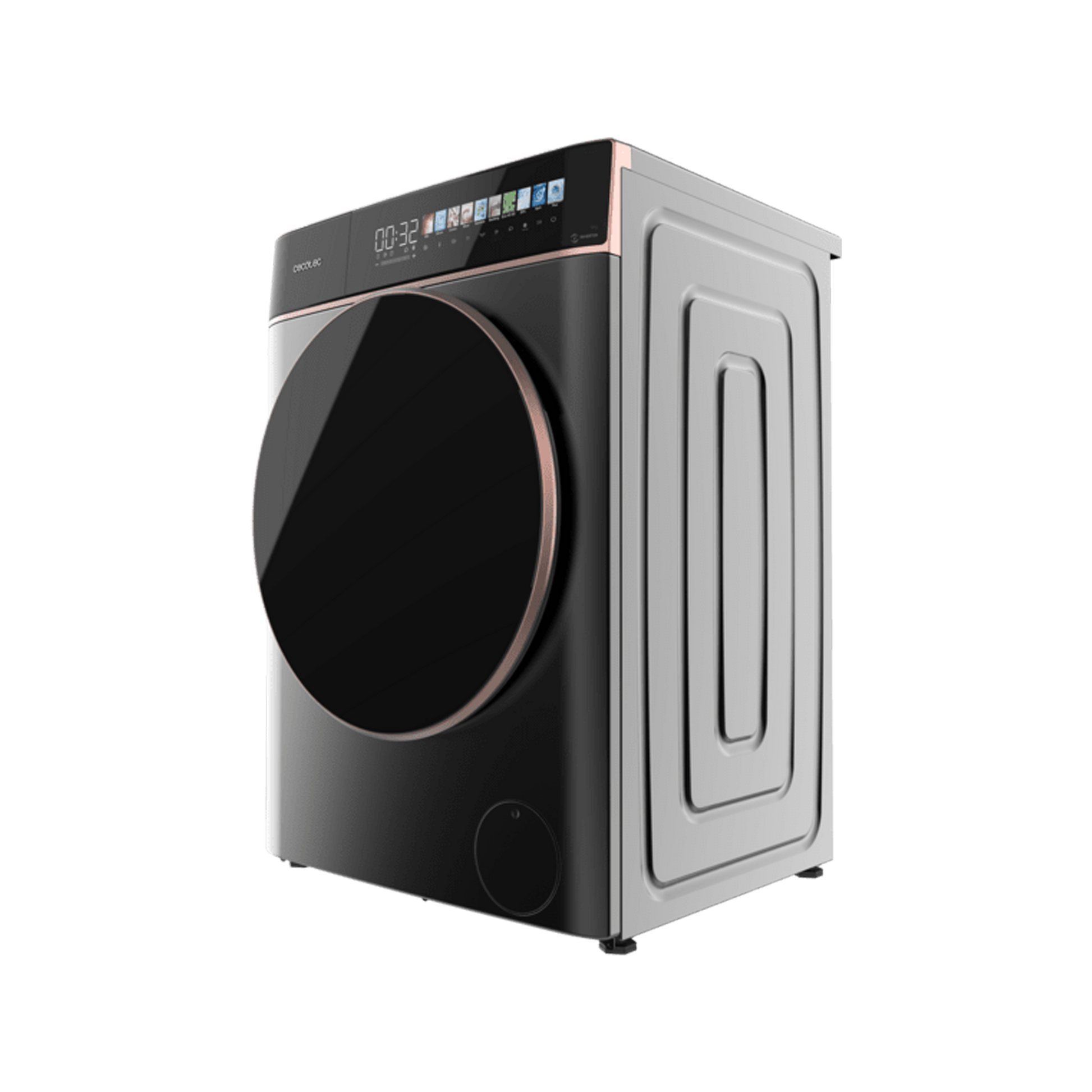 Máquina de lavar roupa de carregamento frontal Steel 9 kg de capacidade 1400 rpm, Ecrã Full Color de 10,3”, 11 programas, motor Inverter Plus, SteamMax, Classe A, Sanitize, OnSmart, Fuzzy Logic, Smooth Wash e borracha antibacteriana