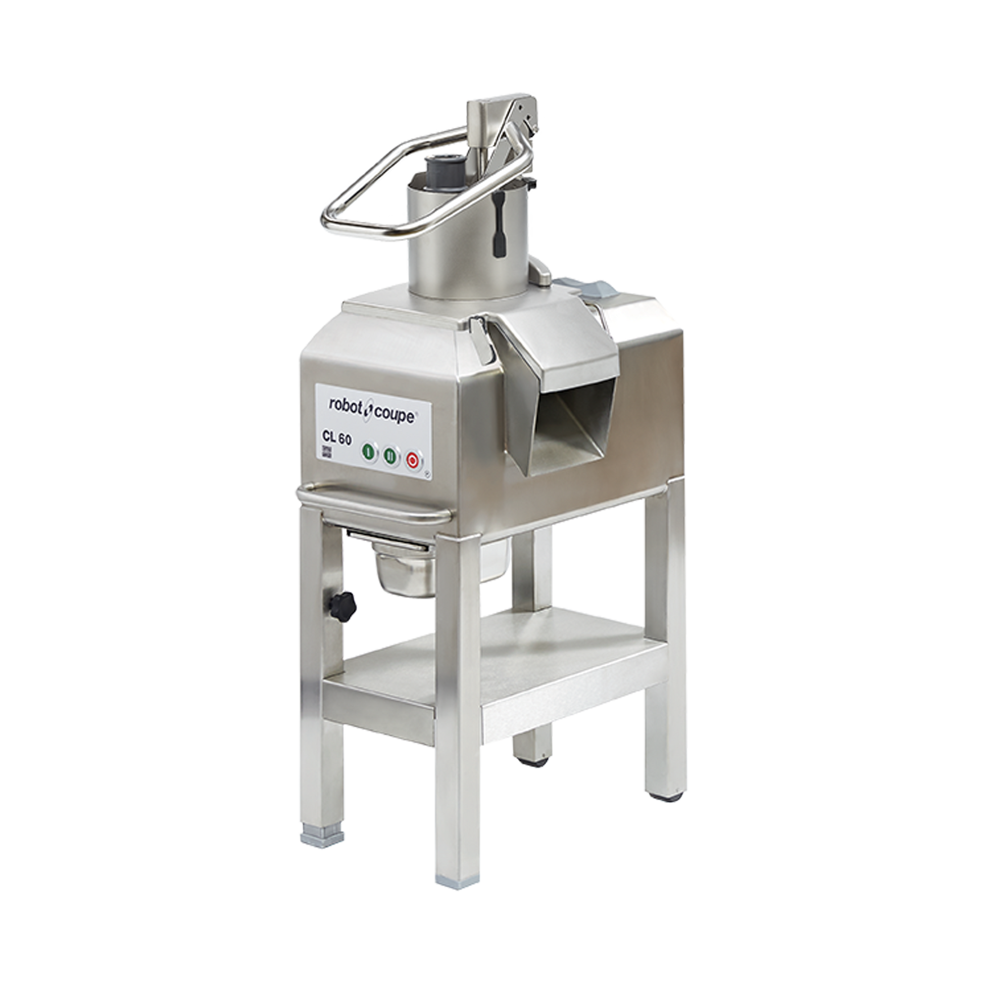 Este equipamento de chão em aço inoxidável foi concebido para cortar grandes quantidades de legumes num tempo mínimo. Robusto, eficiente, fácil de limpar, e disponibiliza a maior variedade de cortes. Ganhe consistência e reduza várias horas de trabalho manual por dia: fatiar, ralar, cortes fatiados ondulados, juliana, macedónia, batatas fritas e até puré.