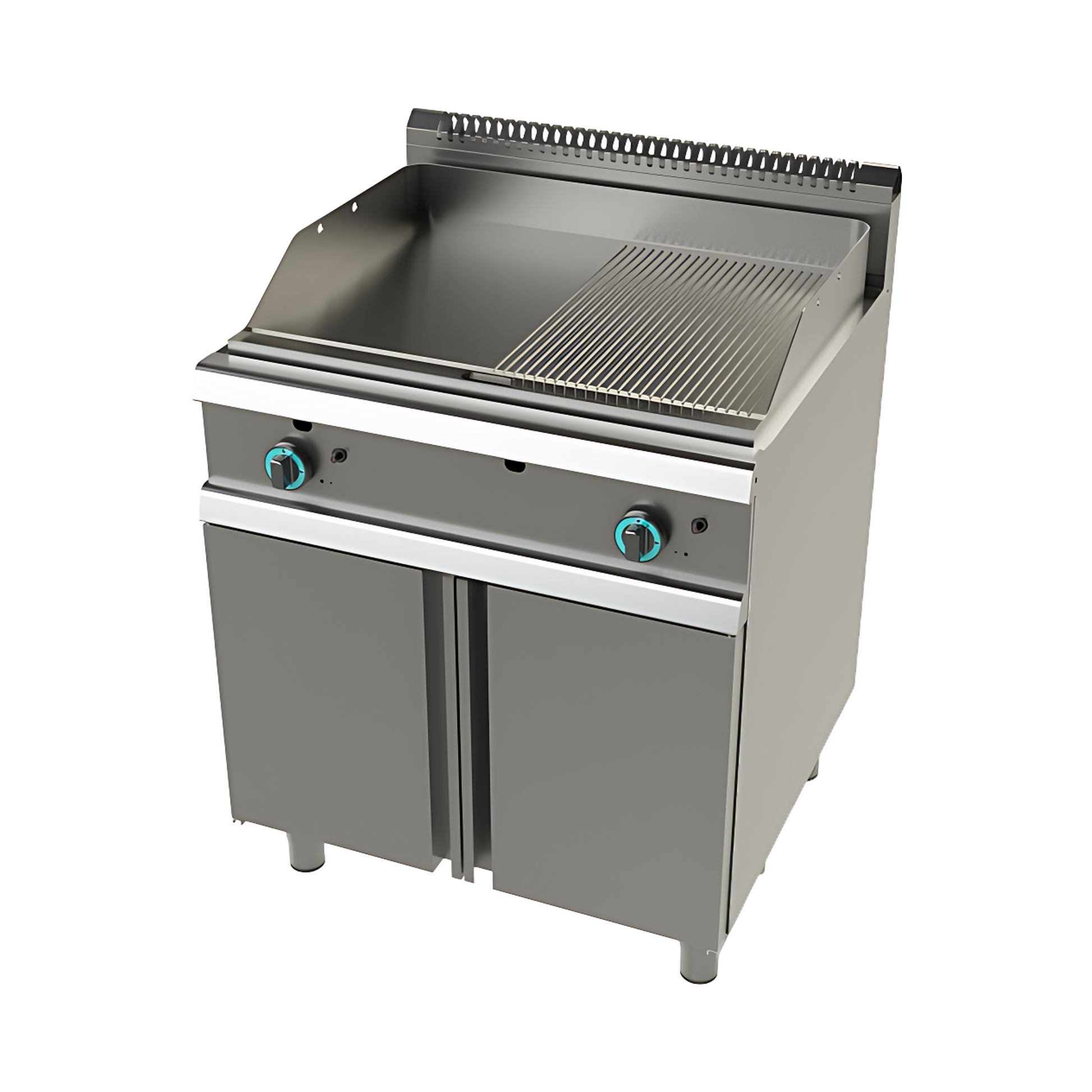 Grelhador Frytop a gás com placa em aço macio - módulo completo 1/2 liso e 1/2 canelado (800mm).