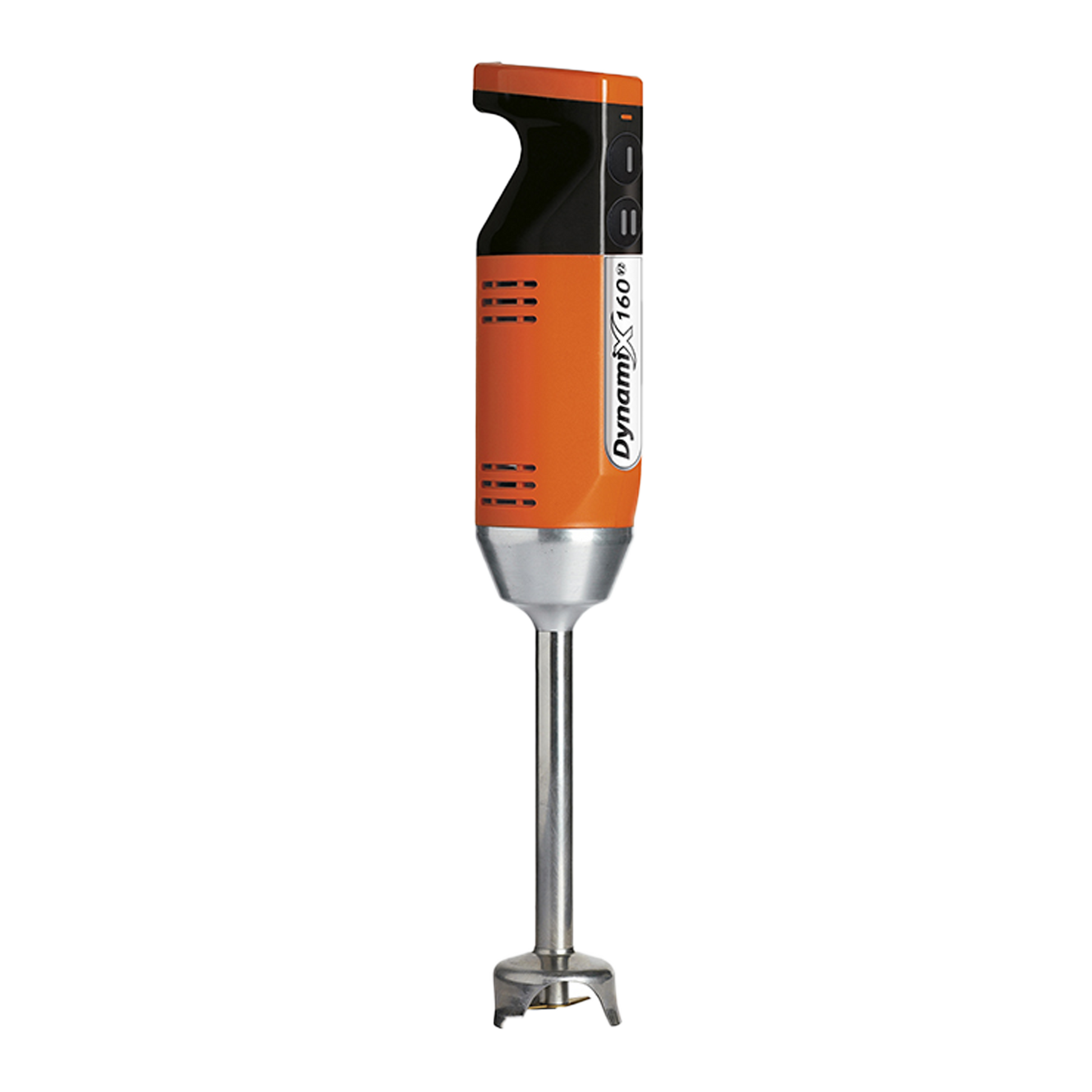 Triturador profissional Dynamix DMX 160 V2 com dois botões que permitem mudar de velocidade com rapidez. Disponível em três cores: cor de laranja, vermelho e branco.