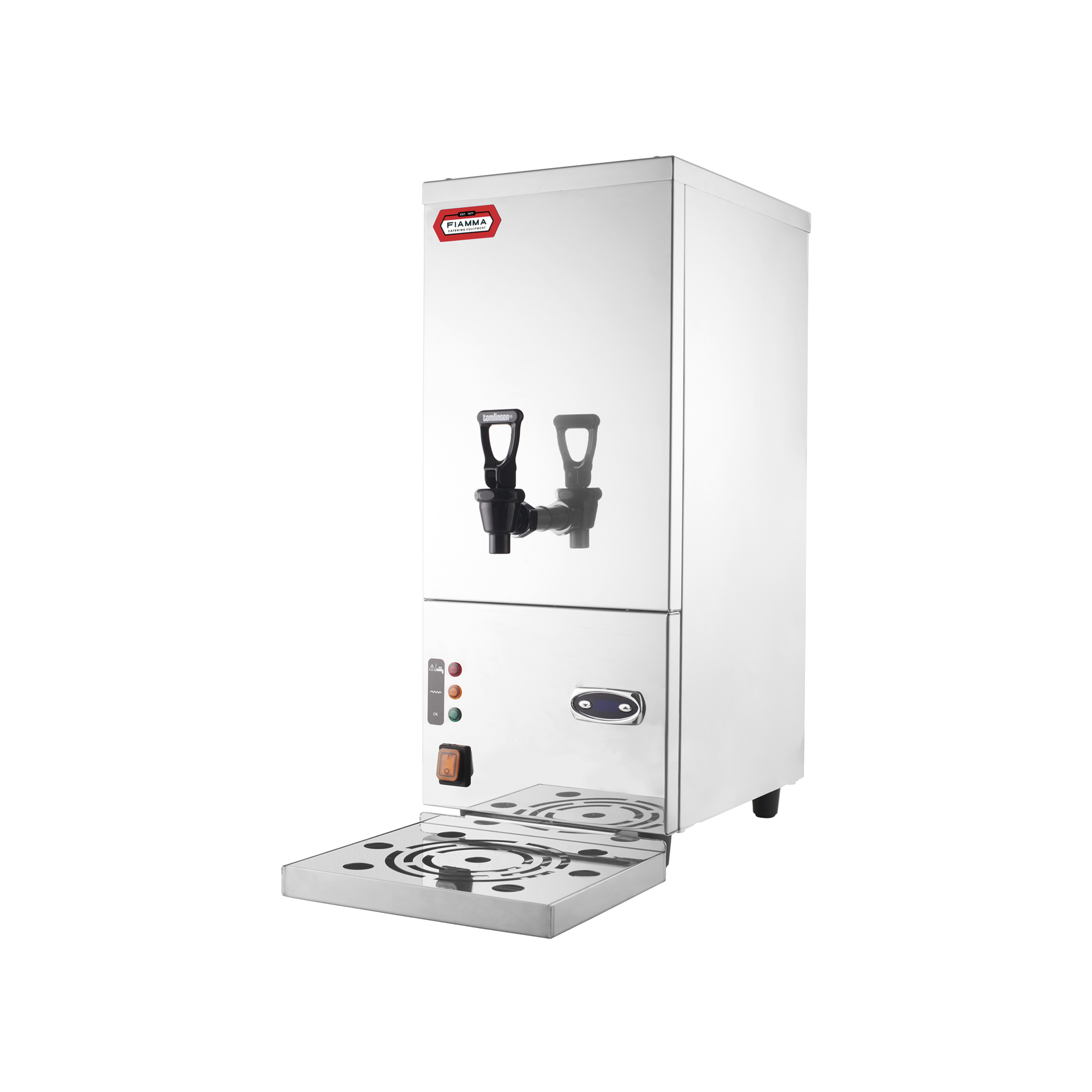 Aquecedor de água Fiamma 10L WB10.3 com estrutura em aço inox, temperatura regulável até 98°C e controlo eletrónico. Ideal para uso profissional.