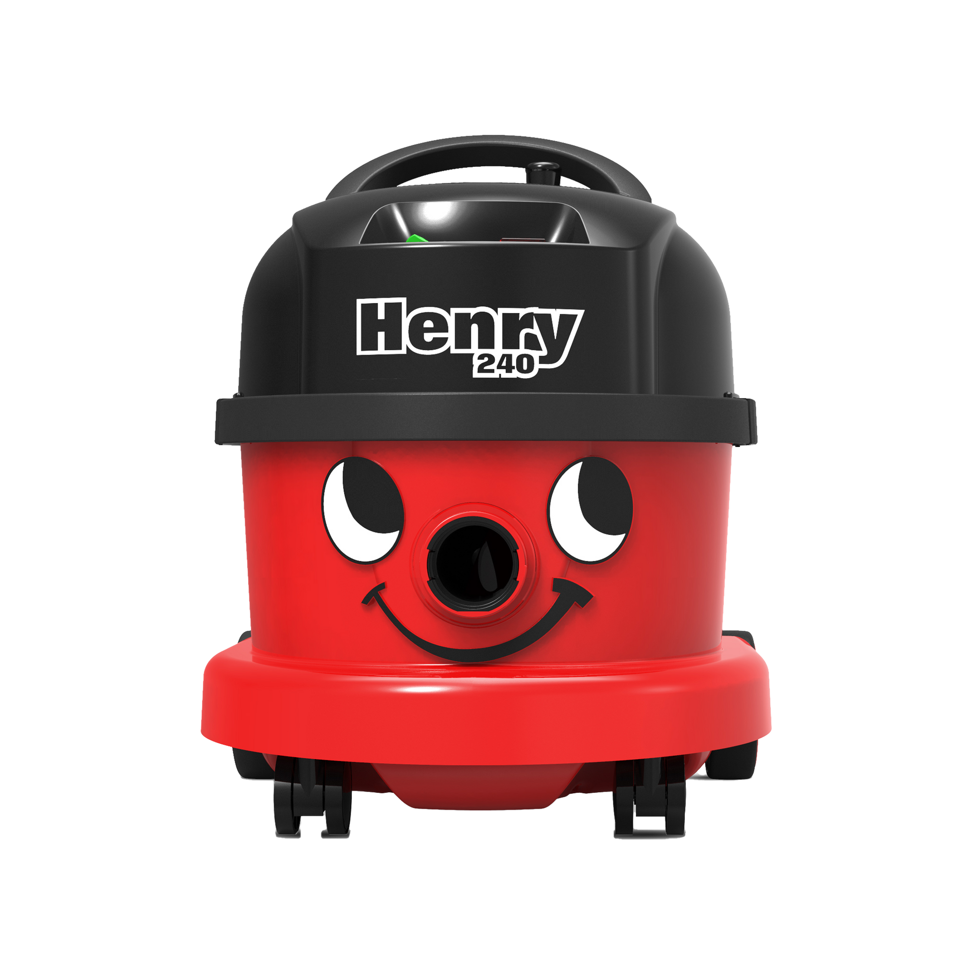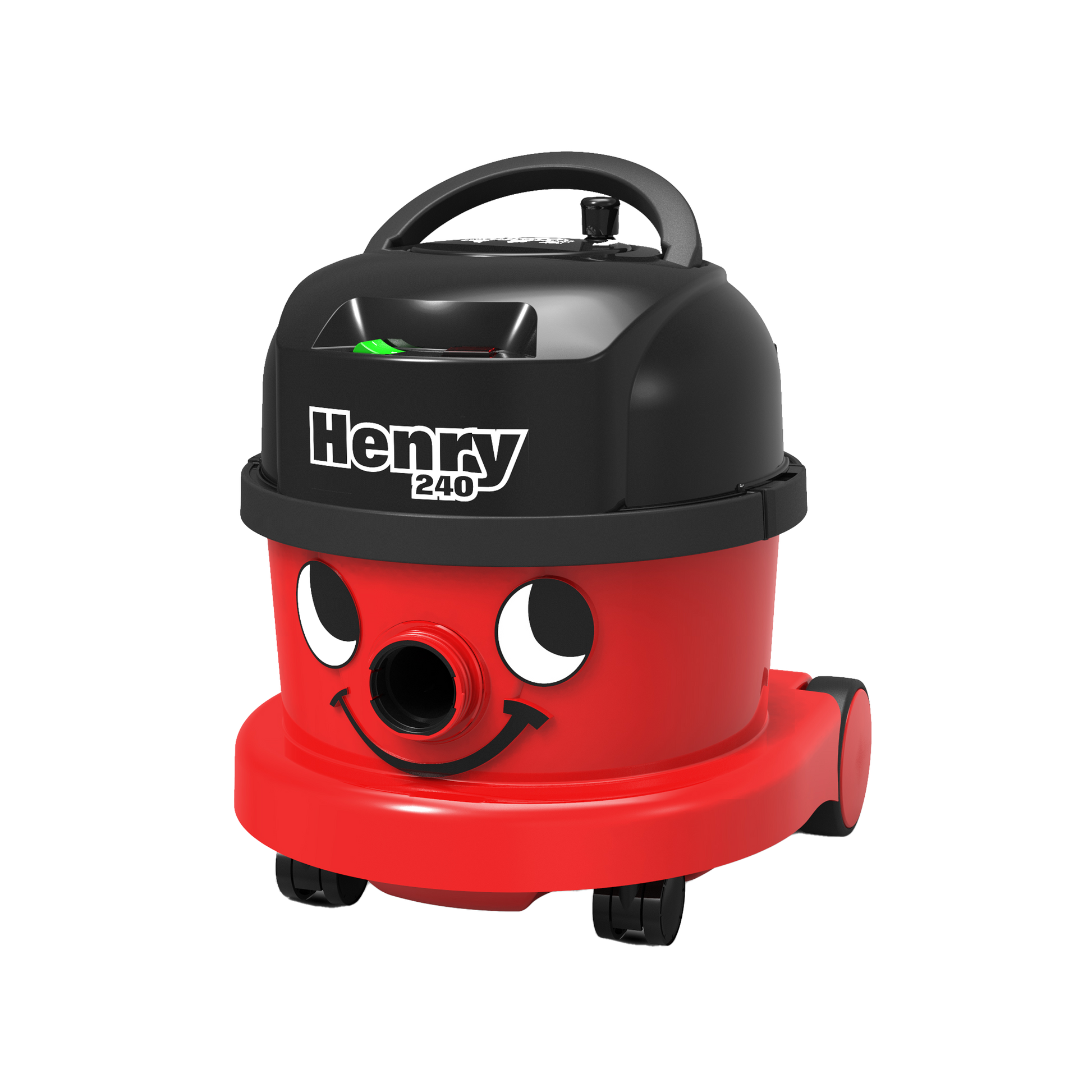 Numatic Henry 240: aspirador profissional 620W, classe A, 9L, 72dB. Potência, eficiência e design icónico para uso diário.