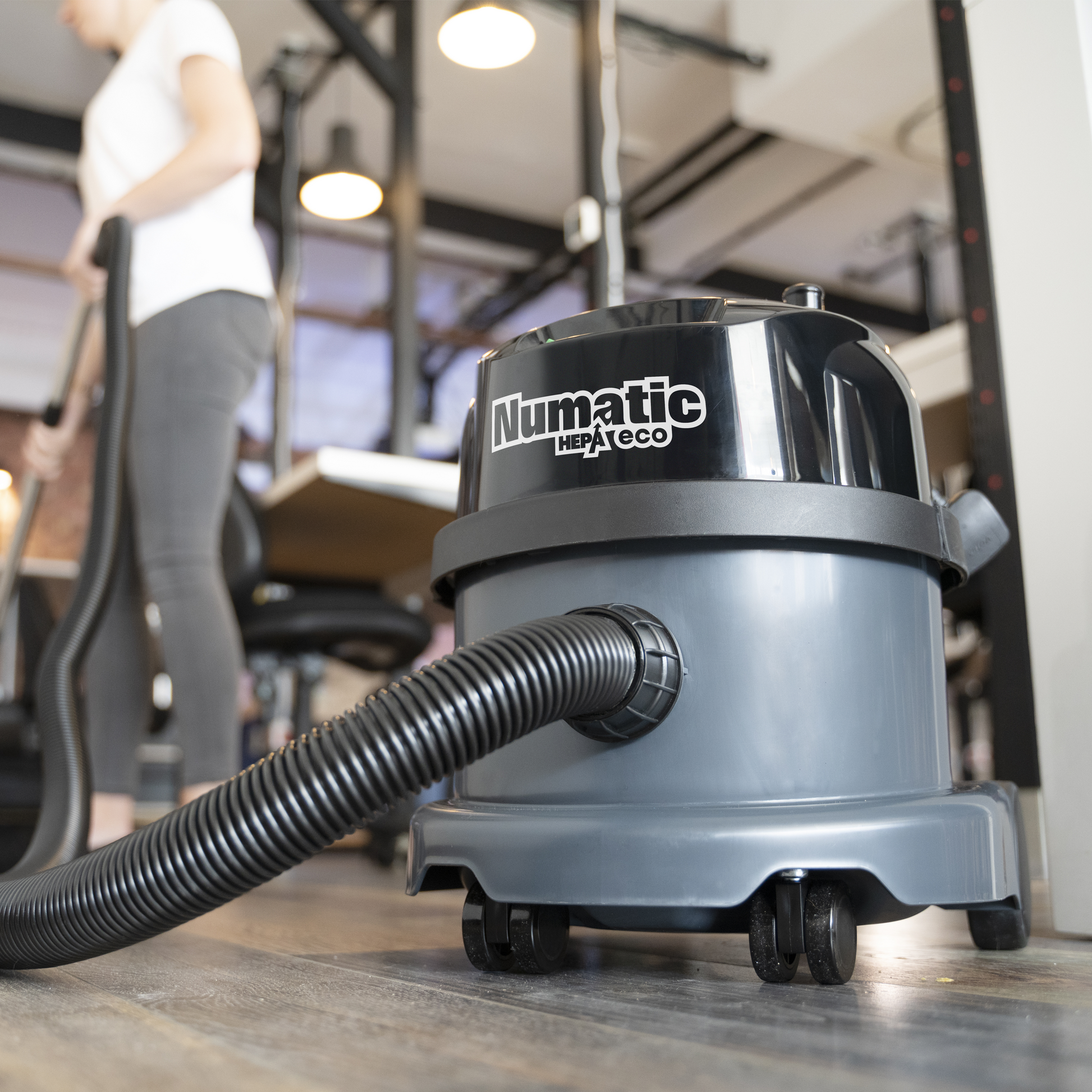 Aspirador Profissional Numatic PPR170: 620 W de potência, 7,2 L de capacidade e 48 L/s de caudal. Compacto, eficiente e ideal para uso intensivo.