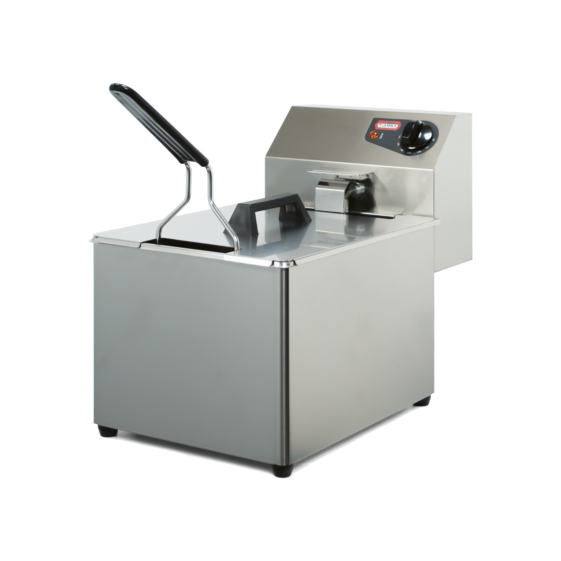 Fritadeira elétrica Fiamma 5 L: potente, compacta e fácil de limpar, com termóstato regulável e estrutura inox. Ideal para cozinhas profissionais eficientes.