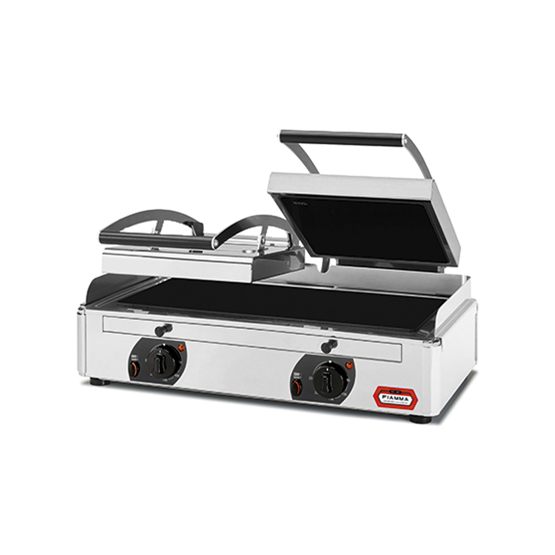 Perfeito para cozinhas profissionais — grelhador Fiamma com tampa canelada, superfície ampla, 230V, consumo reduzido, vidro vitrocerâmico de qualidade superior.